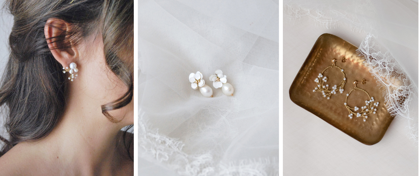 Il tocco finale per la tua acconciatura. La collezione racchiude l'essenza dell'artigianato Elibre: dai luminosi modelli con perle di fiume ai pendenti romantici ed earcuff moderni.