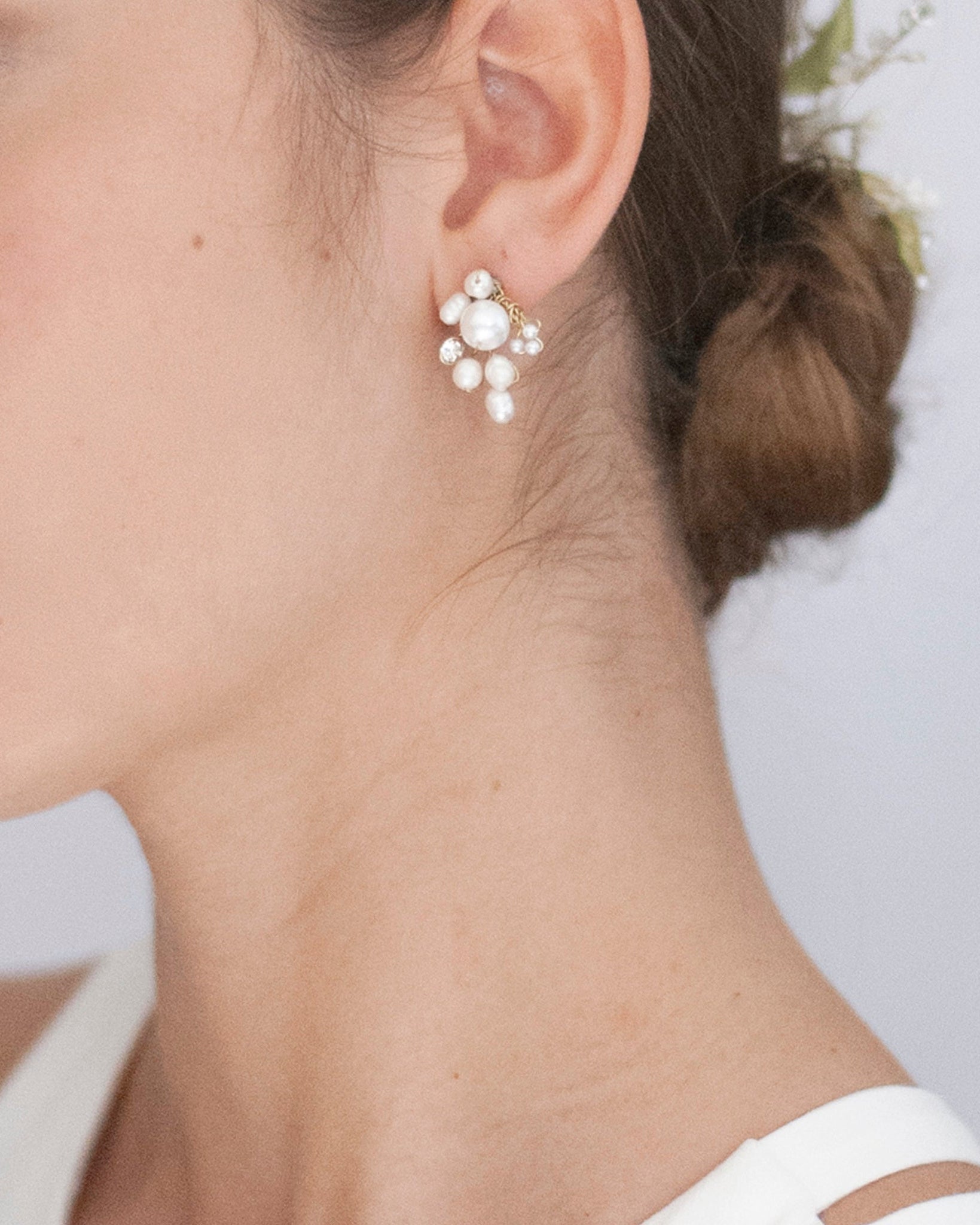 Gli orecchini della collezione si adattano armoniosamente a qualsiasi acconciatura nuziale, che sia un raccolto elegante e formale o una cascata di capelli sciolti e naturali. Possono essere abbinati agli accessori per capelli ed ai gioielli delle nostre collezioni per realizzare un set personalizzato unico ed impeccabile.