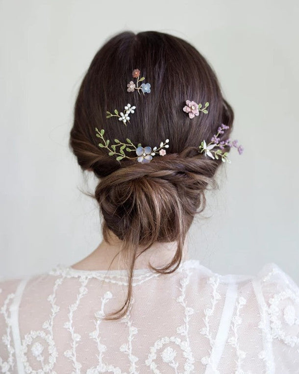 Discover the perfect gathered hairstyles for your wedding: elegant, sophisticated, and beautifully accented by Elibre accessories.