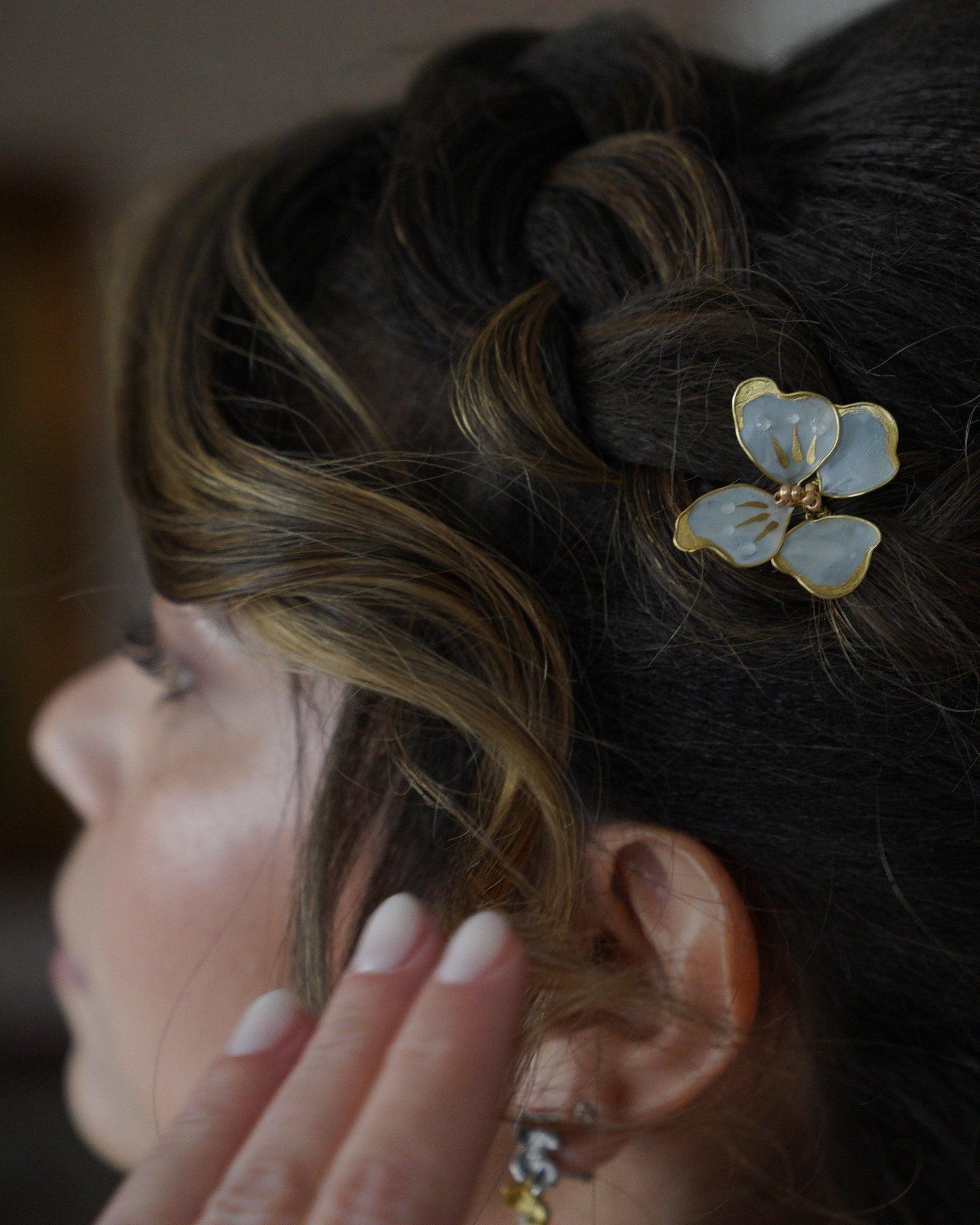 Beyond our hair accessories, discover our artisan-made bridal jewelry, handcrafted in Italy and designed to bring perfect harmony to your wedding ensemble.