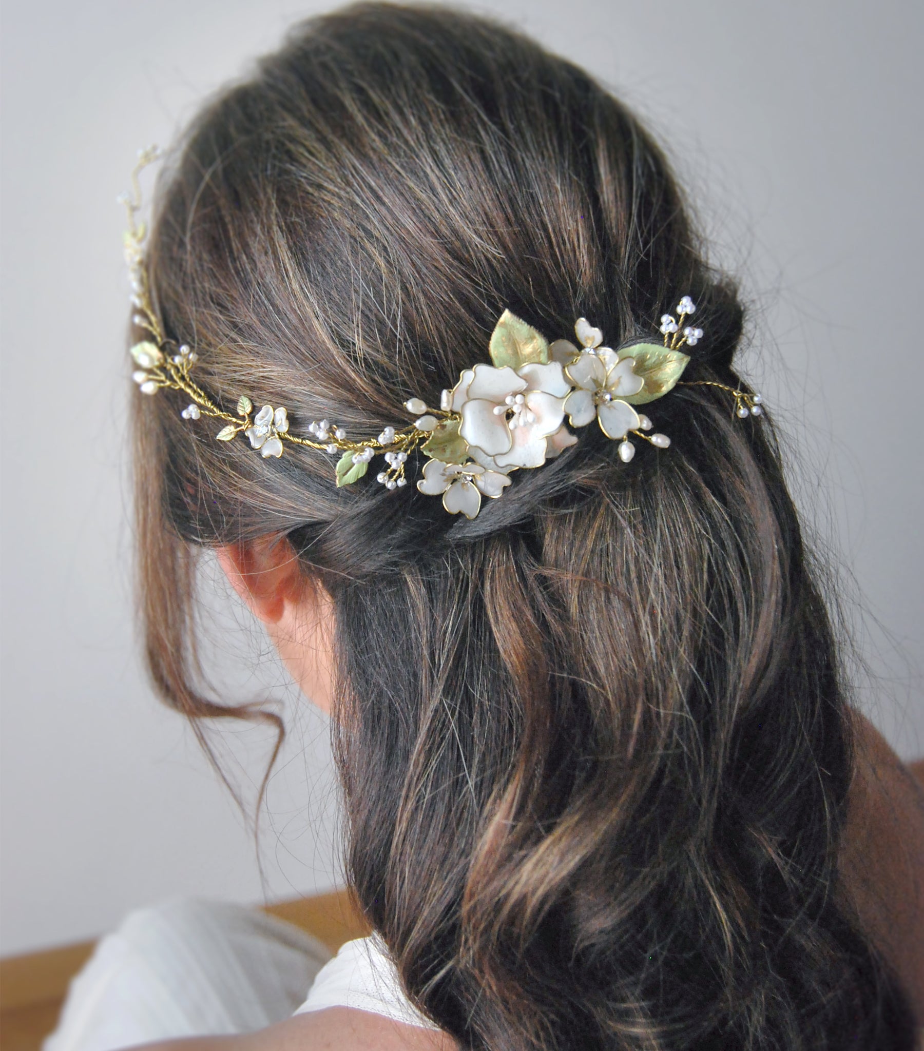 Make your hairstyle unforgettable with Elibre bridal combs, handcrafted with pearls and refined flowers. Lightweight and easy to style, they delicately enhance your hair, creating a harmonious and unique look. Perfect for those seeking timeless elegance, discreet femininity, and a romantic, sophisticated style.