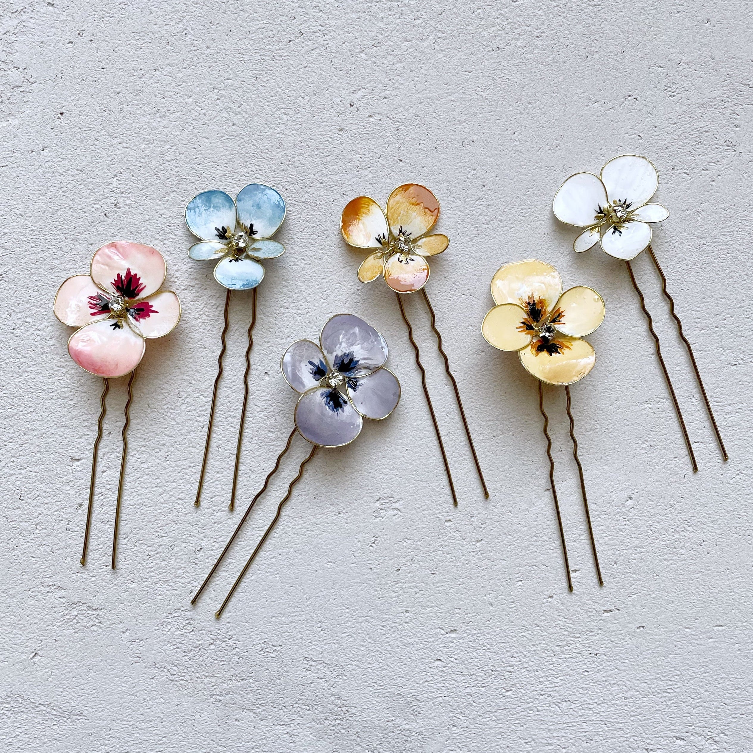 Floral hairpins bring the grace of nature to your hair. Small, hand-molded flowers are transformed into delicate accessories, ideal for romantic and sophisticated hairstyles.