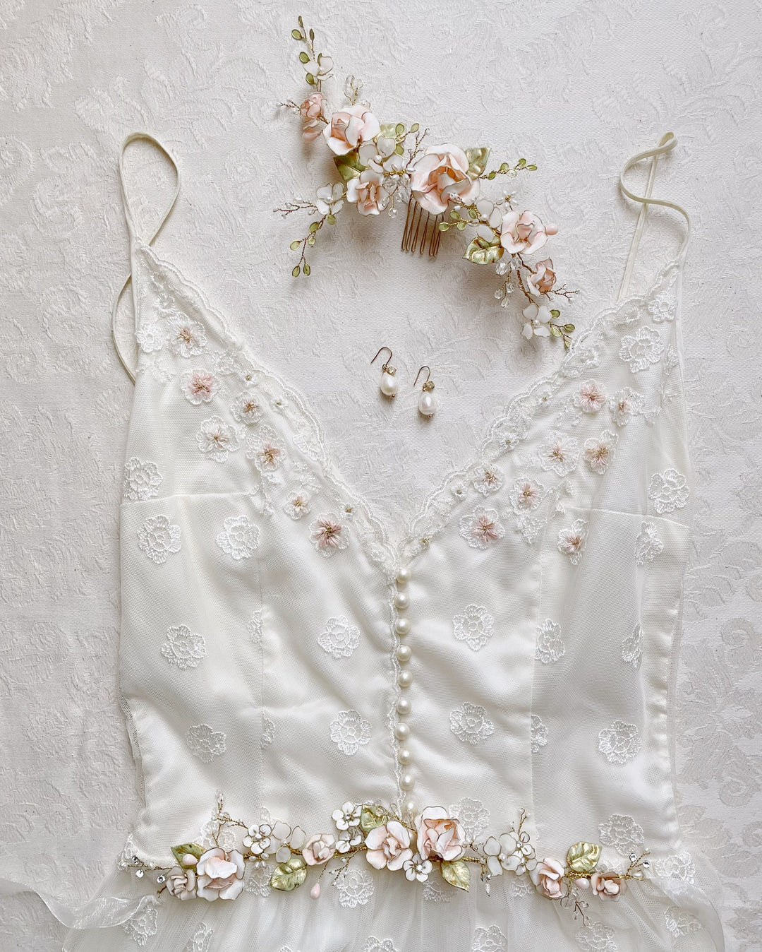 Abito con ricami o applicazioni: Se il tuo abito è già ricco di dettagli, seleziona accessori semplici e discreti per mantenere un equilibrio raffinato.