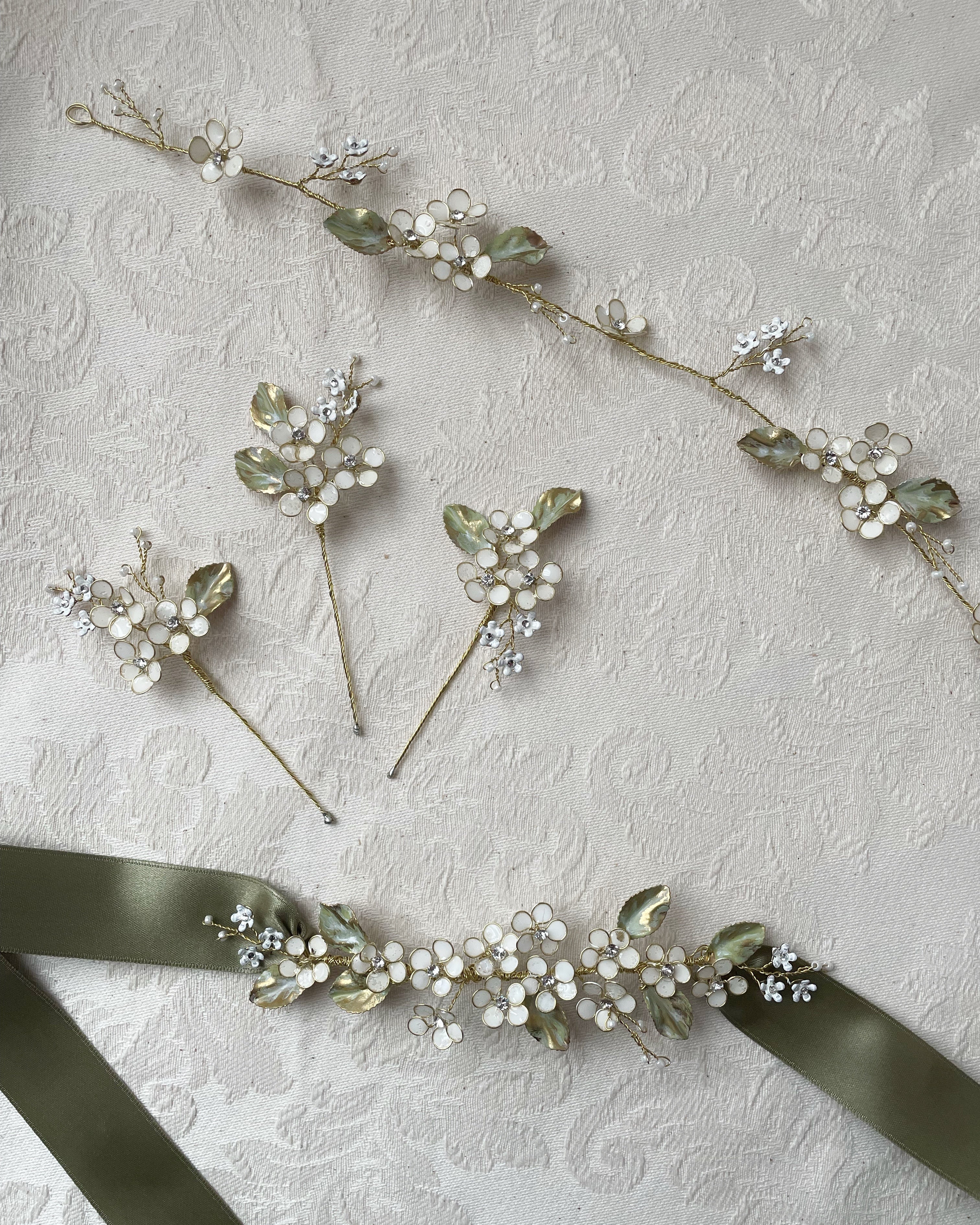 Si sposa con fermagli a mezzaluna, forcine gioiello distribuite con grazia o coroncine flessibili.