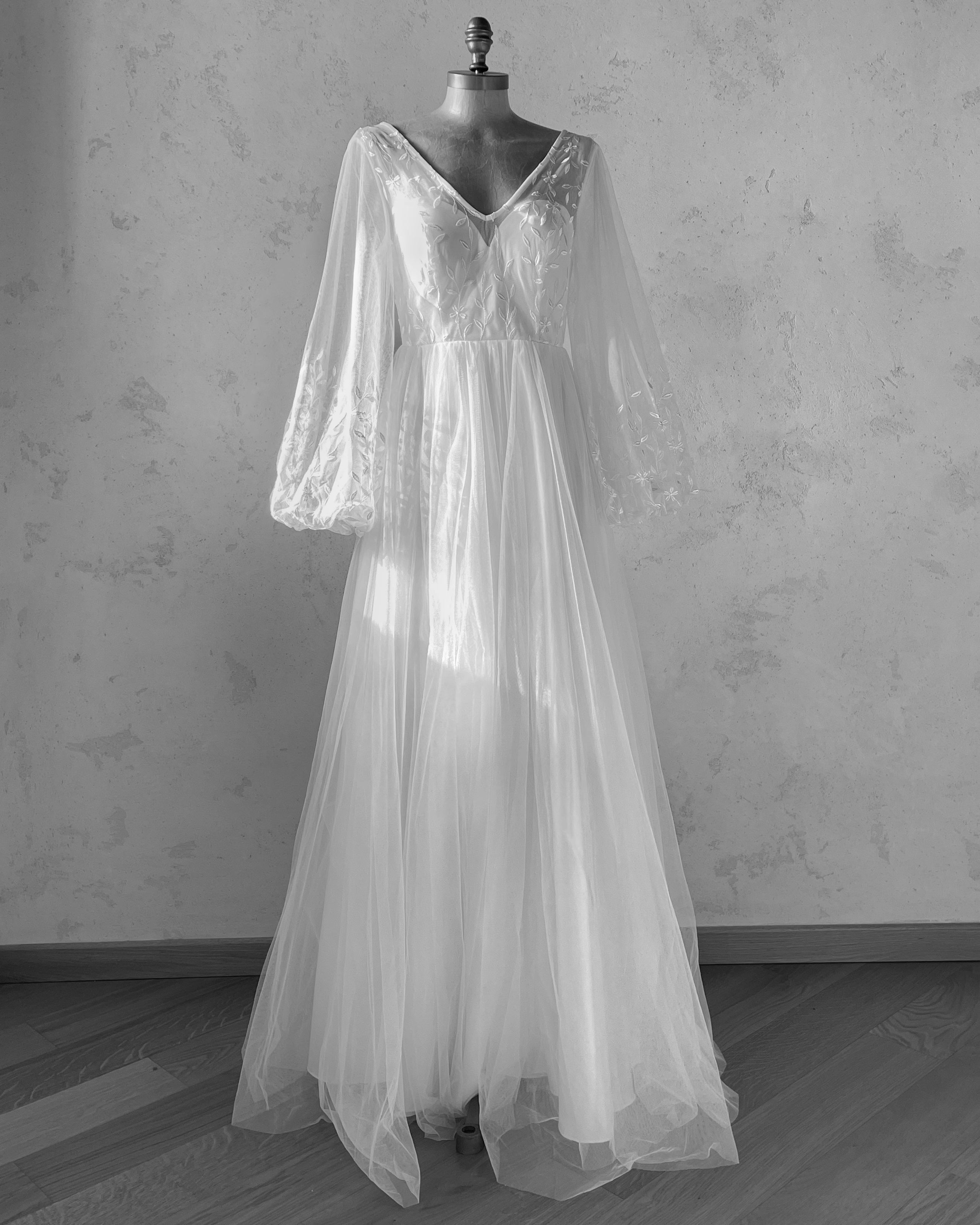 Tulle, chiffon o pizzi leggeri: richiedono dettagli delicati e impalpabili come fiori semi trasparenti e rami di perle.